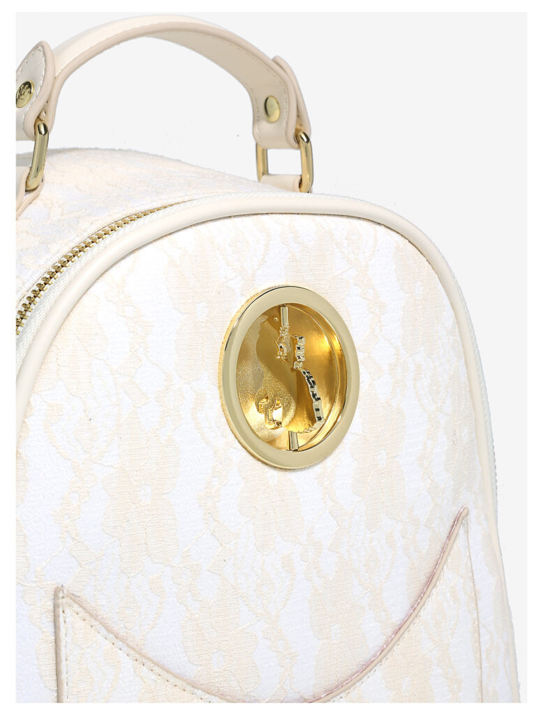 Next up is the beautiful Beauty and the Beast mini backpack by Loungefly. It has an all over cream lace design with little satin buttons on the front pocket. But, the best part of the bag is the gold spinning Beauty and the Beast near the top of the bag! It’s such a unique design feature that I haven’t seen before! You can purchase it HERE.