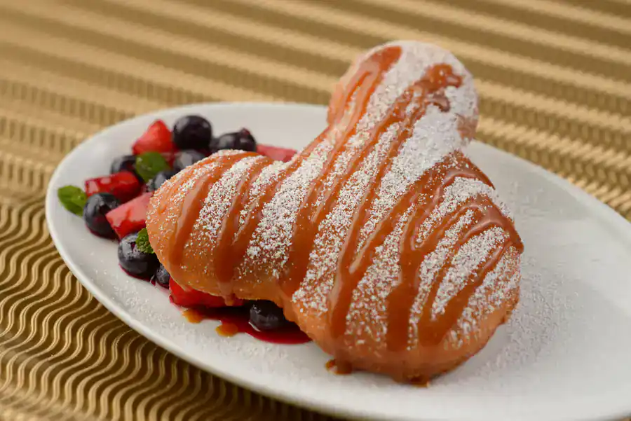 *Berry Beignet: Mickey-shaped beignet with fresh mixed berry compote, house-made Uncle Nearest 1884 Small Batch Premium Whiskey caramel sauce, mint, and powdered sugar