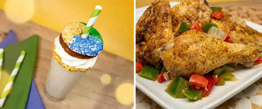 *Tiana’s Mardi Gras Milkshake: Cinnamon vanilla milkshake topped with a Mardi Gras king cake doughnut