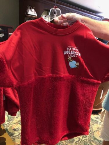 There is also a commemorative t-shirt featuring the holly duo! This wintery blue tee has the logo with Chip ‘n Dale holding onto a large white Spaceship Earth ornament. Within the ornament is green writing that says “May your holiday be nutty & bright”. These critters are just too cute.