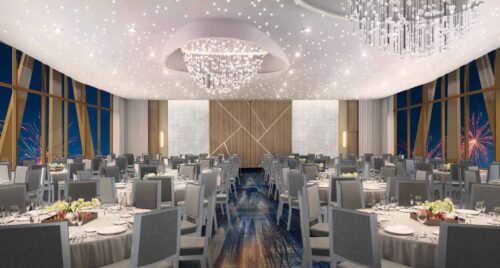 The hotel’s top floor will be a glamorous event space with floor-to-ceiling windows, providing an experience like no other. Boasting breathtaking views of the Swan and Dolphin as well as two incredible Walt Disney World theme parks, Epcot and Disney’s Hollywood Studios, the space is ideal for weddings and gala events.