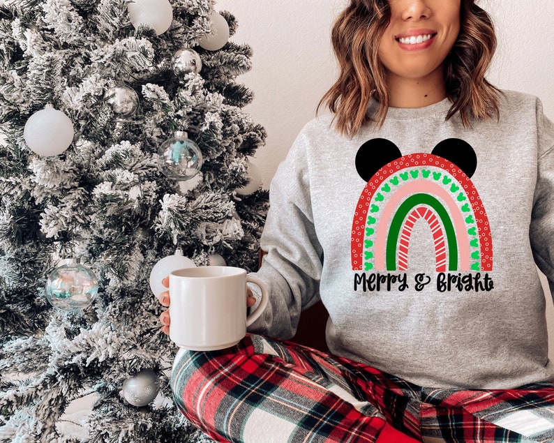 You don’t have to save rainbows for spring and summer. In fact, this Disney Christmas rainbow may be the happiest rainbow of all! One thing is for sure. It is merry and bright! Lift your spirits this holiday season when you wear this fun and colorful Disney Christmas Rainbow Sweatshirt. You can find it on Etsy from BreeBeeDesignsShop for just $25.00.