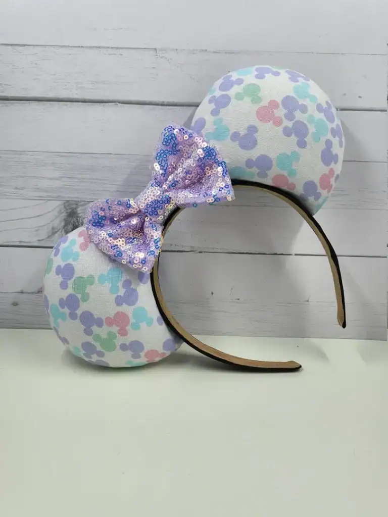 Hunt for eggs and tear into your Easter back in Disney style! These sparkling ears are perfect for your Easter celebration at the Disney Parks. The blue of these ears reminds me of the blue skies of spring and the bow is totally giving me “green spring grass” vibes. Each side features a large, colorful Easter egg with “hidden Mickeys” in rhinestones. You can find these ears on Etsy from EnchantedCharactEARS.