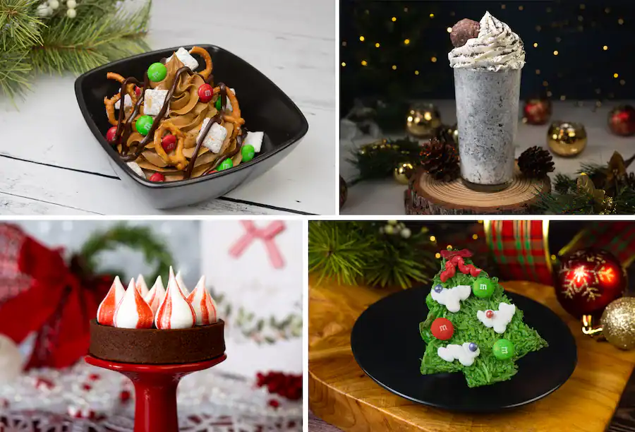 - Magic Holiday Tree: Coconut, pecans, and M&M’S chocolate candies on a graham cracker crust (New) (Available during Mickey’s Very Merry Christmas Party only)