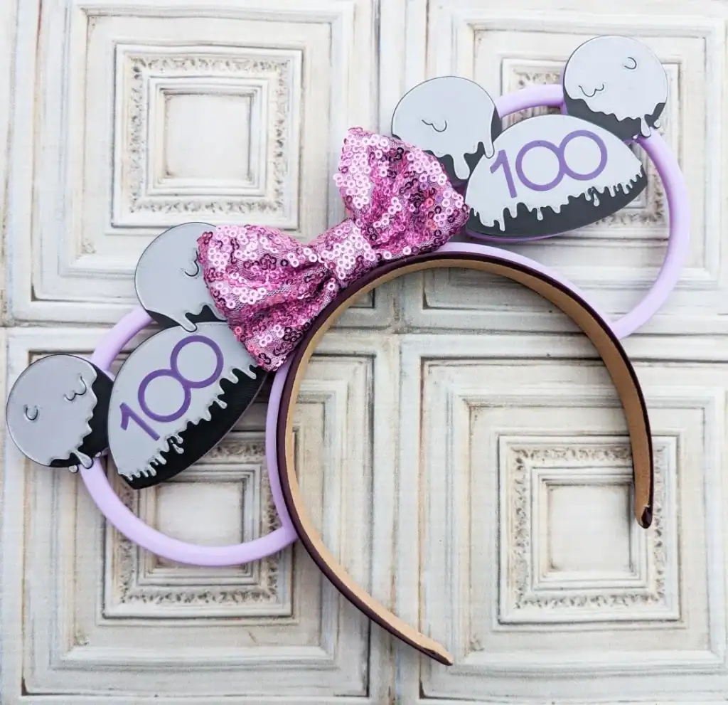 Ears on ears on ears! These 3D printed mouse ears are so much fun! Each light purple ears feature a smaller, 3D printed version of the Disney100 Ears that we first spotted at D23 Expo 2022. Dripping in silver and stamped in purple with “100”, these ears are ready for a celebration! You can find them on Etsy from MikeyMouseEars.
