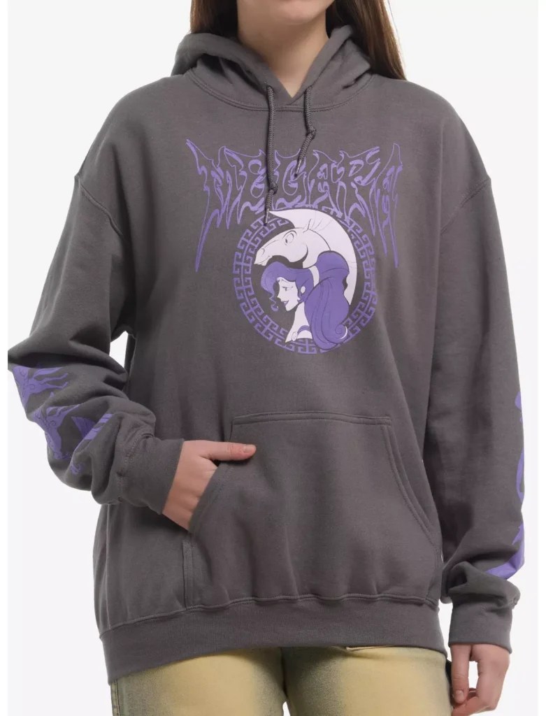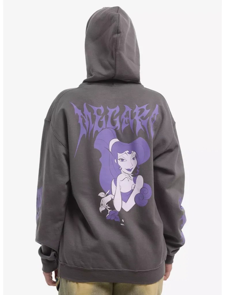 For those who love a darker Disney aesthetic, the Hercules Megara hoodie is a must-see. The gray base is paired with purple artwork and a dramatic graphic style that feels almost gothic. Meg’s iconic attitude really shines here, especially with the bold design on the back.