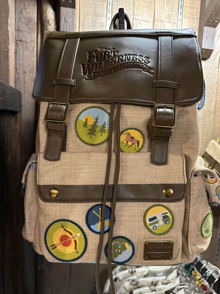 Let’s take a look at the newest backpack! This design really works for Fort Wilderness, in my opinion! I love the embossed faux leather! The patches feel outdoorsy to me. Clearly, that works for a resort with Wilderness in the title!