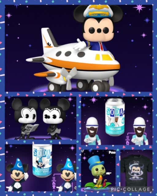 By day, I work with airplanes, by night I’m a Disney princess. Honestly, I’m a princess all the time, but that didn’t sound as catchy. So, when I saw the Captain Mickey peeping out of “The Mouse”, Walt’s personal plane, that made #1 of my Wish List! However, all of the exclusive Funko Pop are A-DOR-ABLE! There are 11 new Funko Pops and a Funko Themed D23 t-shirt. New Funkos range from Jiminy Cricket to Frozone to the always loveable Baymax. Ba-la-la-la-la! Promo pics display a themed soda can with some of the Funkos. I look forward to discovering if one comes with all the Funkos or just certain ones.