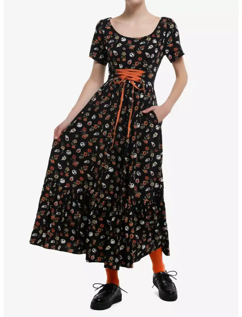 The Nightmare Before Christmas Floral Lace-Up Maxi Dress