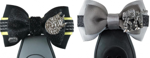 There are also bows that feature iconic ships like this Millennium Falcon Bow or this AT-AT Walker Bow that feature little metal models of their respective vehicles. These bows would be perfect to pay homage to the new attractions at Star Wars: Galaxy’s Edge!