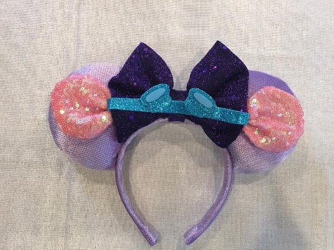 The first set of ears is the Gadget headband. These ears are lilac and have a glittery, purple bow in the center of the ears. There are even a pair of sparkly blue goggles on the ears! be sure to turn the ears over and you will find a shimmering silver wrench on the back of the ears!