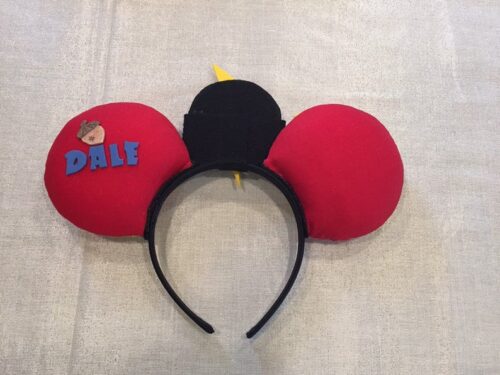 You can also get a pair of red Dale ears! These ears have the Rescue Rangers logo front and center. There are also little yellow flowers on the ears. This matches Dale’s trademark Hawaiian shirt. The back of the ears feature Dale’s name and a cute little acorn.