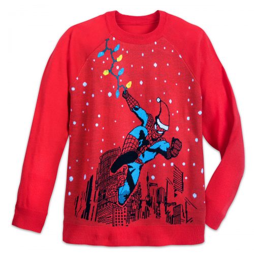 The lights are multi-colored and even change up the speed and pattern as they dance across the sweaters! There are three different options available at shopDisney and Disney Store locations currently. Spider-Man, r2-D2, and Stitch.