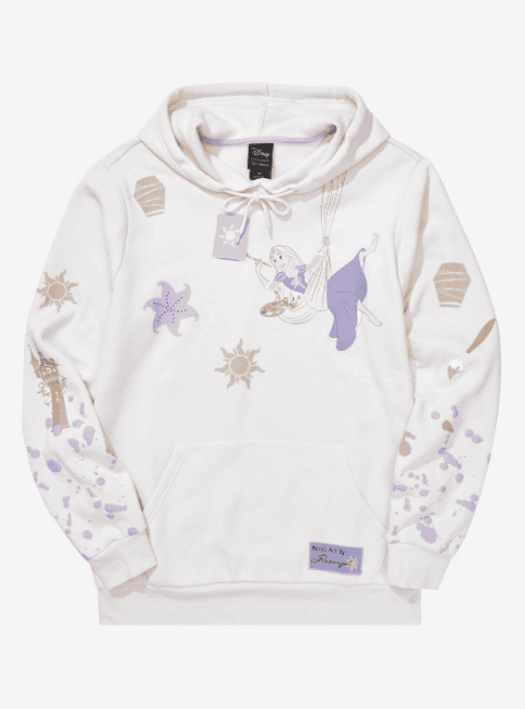Okay, listen. I know that many of us are in a major heat wave right now and the last thing we want to think about doing is putting on a sweatshirt. However, I promise you, there will be a point when the heat subsides, and you’ll be looking for something cute to help cut the chill. Plan ahead for that moment with this delightful Rapunzel Mural Paint Hoodie.