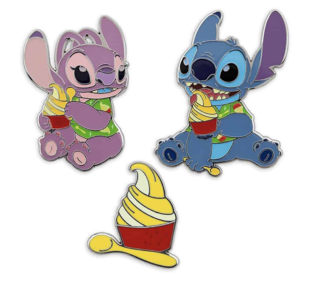Tanto la colección de Stitch Attacks como la de Disney Eats tienen como tema la piña. Uno de los bocadillos tradicionales en Disney son los Dole Whips, esa nieve de piña tan deliciosa que todos soñamos con ella fuera del parque. Elige entre mochilas, Spirit Jerseys, orejas para parque, vasos para bebidas frías y claro Stitch y Angel en peluche comiendo su nieve al igual que en este set de pins.
