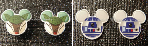 There wouldn’t be a story without two of my favorite characters, Yoda and R2-D2, so of course, there are Yoda-Inspired Mouse Head Post Earrings and R2-D2 Mouse Head Post Earrings.