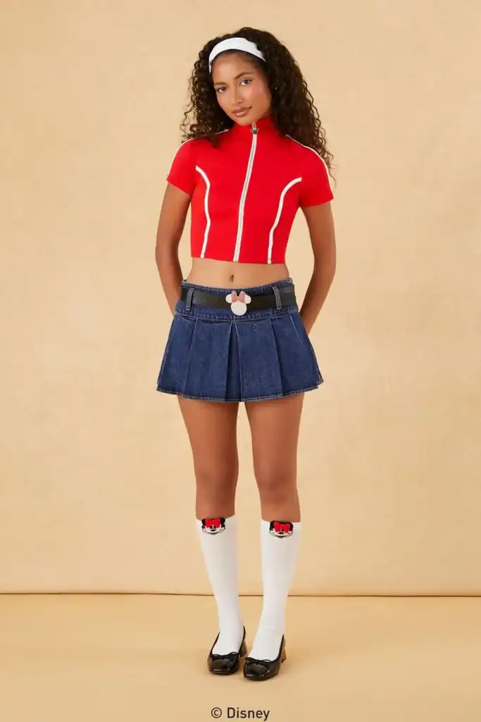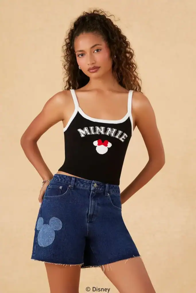 The new collection is jam packed with items that will take you from night to day and from the streets to the sports field. Take this ringer tee for example, which can be paired with this Mickey Mouse Mini Skirt for a flirty and fun look. And if you like the ringer tee, you are in luck! The same pattern also comes on a Seater-Knit Cami!