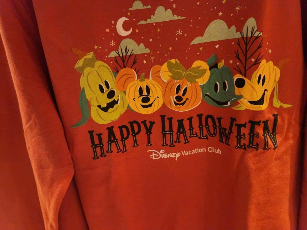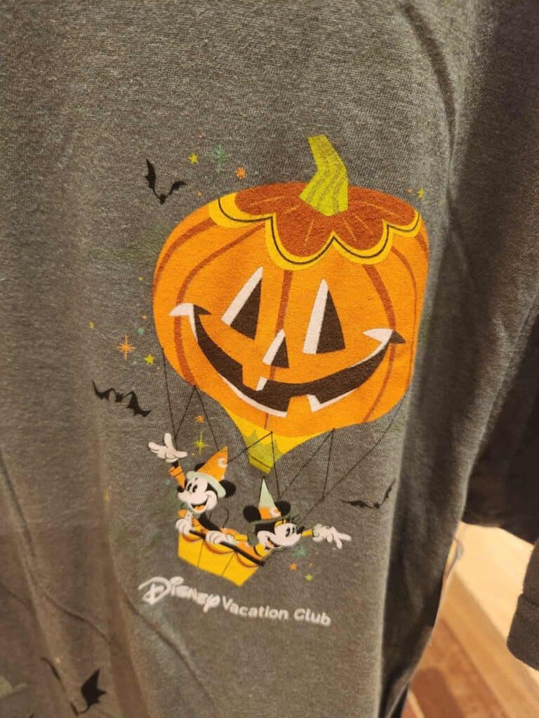 Show everyone Life is Gourd with a Halloween DVC crewneck sweatshirt and short-sleeve t-shirt. Discover the Fab 5 “Fall Edition” frolicking in a field under a crescent moon on the orange sweatshirt. A larger “Happy Halloween!” tops the design, while a smaller font spells out “Disney Vacation Club” below. The short sleeve t-shirt offers you a ride on a hot air balloon like none you’ve ever experienced! Mickey and Minnie soar above the ground for a seasonal bird’s eye view of the Haunted Castle in a Pumpkin themed balloon.