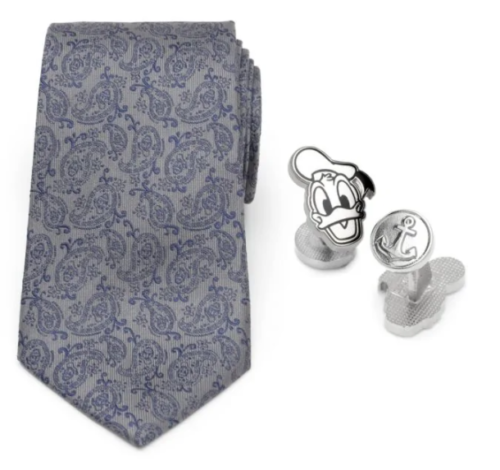 You can find both the Donald Duck Paisley Gray Men’s Tie and the Donald Duck Gift Set on cufflinks.com HERE. The tie retails for $58.00 and you can get the entire set for $110.00.