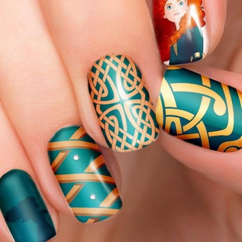 Fight for your own hand with these Merida inspired nail wraps. The rich green and gold color palette is perfect for showing up your royal style. You can get them HERE.