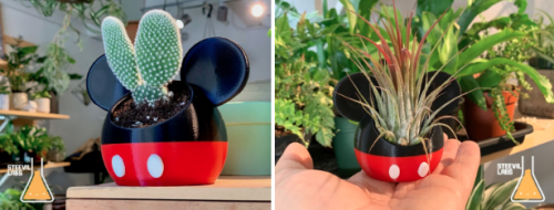 This 3D-printed planter comes in two sizes can be used as a planter, a cute little sculpture, or even a small candy dish or catch-all bowl! It can also be made in a variety of different color combinations! I’m a huge fan of the Steamboat Willie and Minnie Mouse-inspired color combinations! You can even have it printed in glitter gold or keep it simple with black and white!