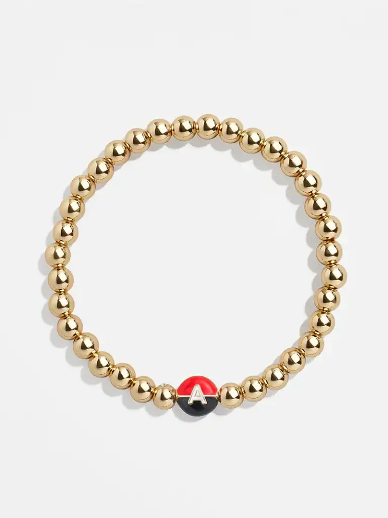 Choose the Mickey Initial Pisa Bracelet for just a touch of personalization. A classic Disney design on the tried-and-true Pisa bracelet design makes for a can’t-miss layer. A black and red bead features the outline of Mickey’s head on one side and a gold initial on the other.
