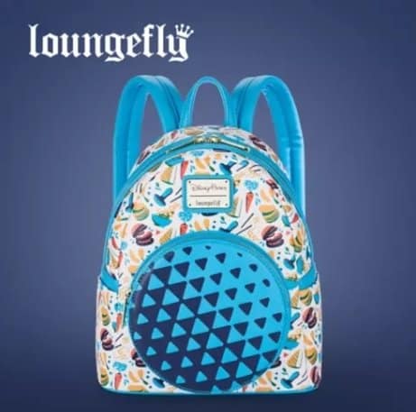Most importantly, we have to have a Loungefly! ShopDisney released a picture of the new Food & Wine Loungefly design. It will be released on July 27th, the first day of the festival. You know these bags fly off the shelves and I’m sure this one will be no exception. Bright blue, almost an aqua, takes center stage on the bag. Literally. A two-tone Spaceship Earth provides the main focal point. It’s hard to tell from this picture but I’m willing to be that is going to be an outside front pocket. The rest of the bag consists of scattered food items from around the world against a white backdrop. It’s making my mouth water!