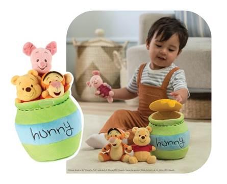 Act out your favorite with a whimsical four-piece playset with different sounds, textures & mini plush friends from the Hundred Acre Wood. It includes a Winnie the Pooh rattle, Tigger squeaker & Piglet crinkle–each with authentic details that collectors & kids will love. When playtime’s over, everything stores inside the included 8” honey jar carrying case for fun on the go. You can find it HERE.