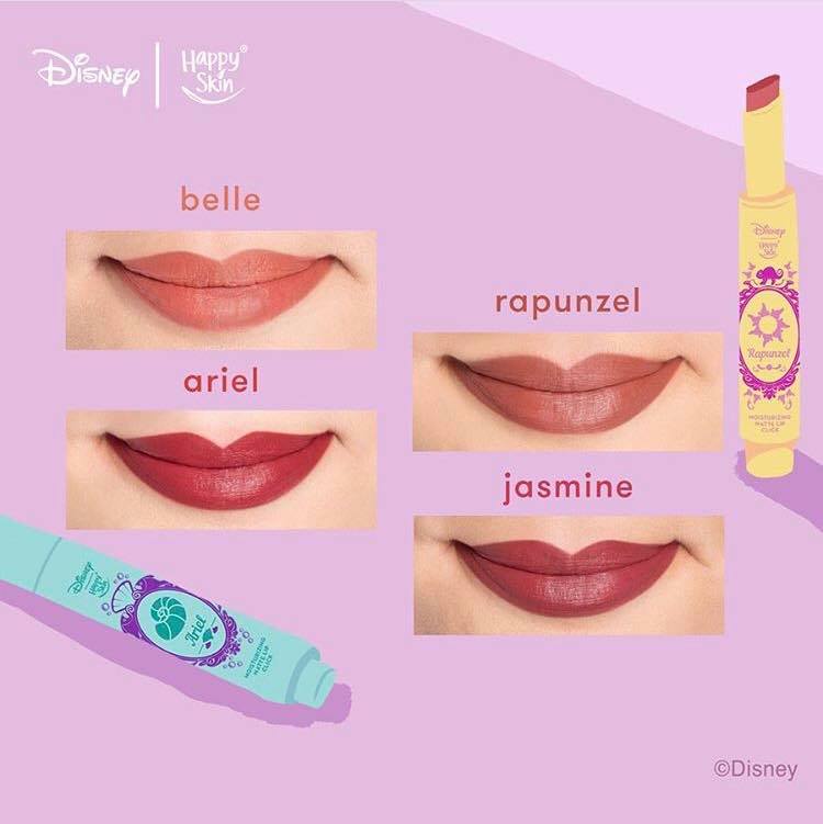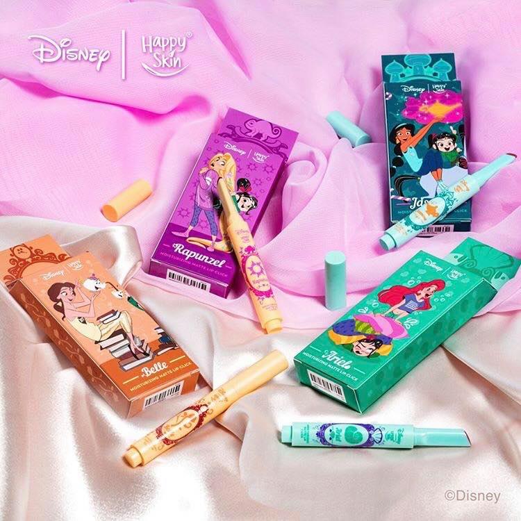 The Disney x Happy Skin Moisturizing Matte Lip Clicks are a new innovation that always releases a fresh lip product with every use. You’ll only get what you need in every click! This delivers a highly pigmented pout with a matte, long-lasting finish. There are four shades inspired by Belle, Ariel, Rapunzel, and Jasmine.