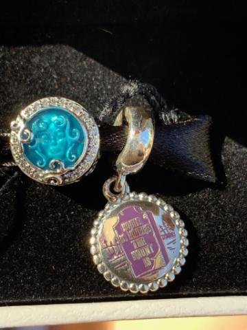 We were waiting for the Haunted Mansion Pandora charms and had only seen the artwork for, what turns out to be, the set. This set is everything I was hoping for and more. I won’t lie. The dangle charm says Home Is Where the Haunt Is. The set retails for $130 and is not yet at Disneyland but it should arrive shortly.