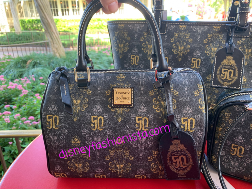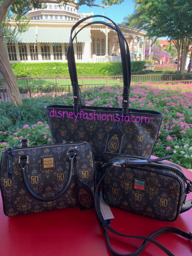 The Dooney and Bourke bags have been received with a bit less excitement than I think Disney was hoping for but I will say they are much nicer in person. They do have the Haunted Mansion wallpaper design (again) but the gold in the design reflecting the Haunted Mansion’s golden anniversary is really lovely. Not to mention the “50” incorporated in the design. There are three silhouettes crossbody ($228), tote ($248) and satchel (which is for annual passholders- $248).