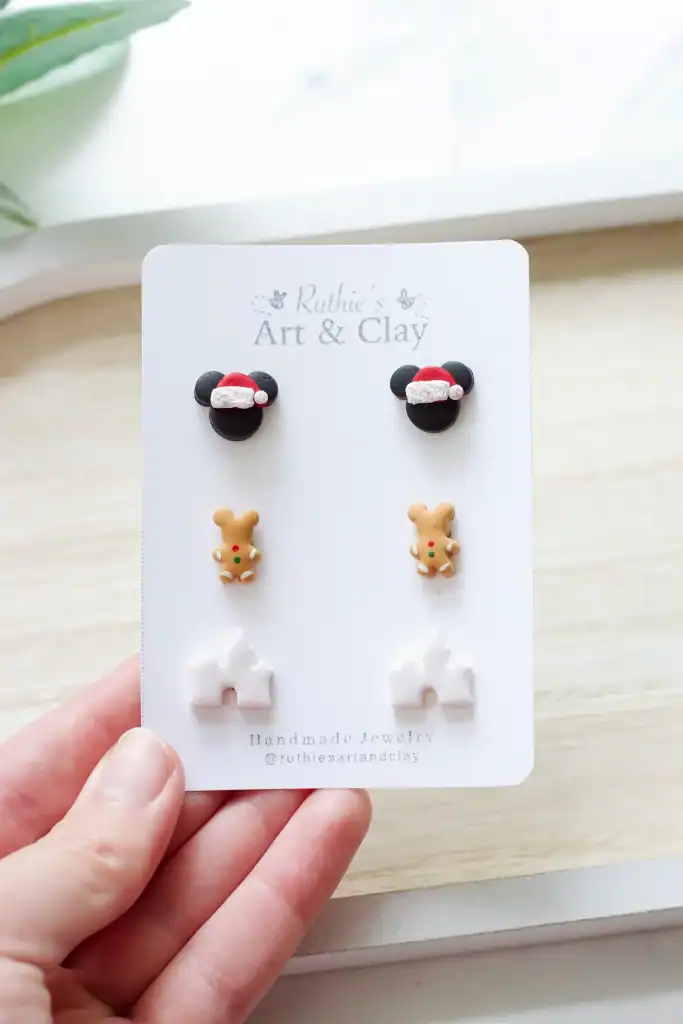 Finally, add a subtle touch of holiday spice to your look with these adorable Santa Mickey and Mickey Gingerbread stud earrings from RuthiesArtandClay on Etsy. They are the perfect little touch of Disney magic for the office or holiday party this season.