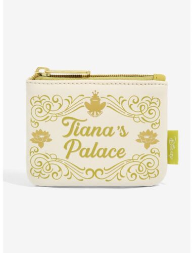 In addition to the backpack, you can also get a small, ebony colored coin purse. This purse has a detailed, gold-colored design. The words “Tiana’s Place” and “New Orleans” are written on either side of the purse. Unzip the small zipper at the top of the purse and you will discover the beautiful gold patterned lining that matches the theme of the rest of the purse.