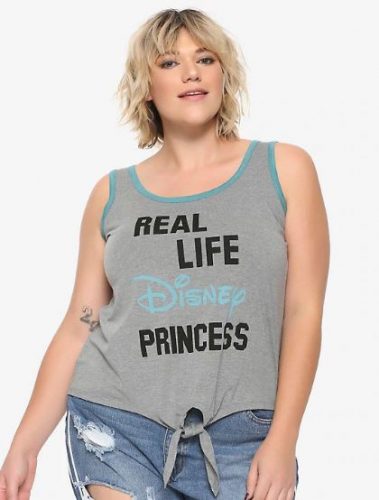 Have you always had a sneaking suspicion that you’re actually a Disney Princess? Me too! This grey tank top with teal ringer detail has a text design that reads “Real Life Disney Princess” in black letters with flirty tie-front detail. It’s the perfect tank top for all of us REAL Disney Princesses!
