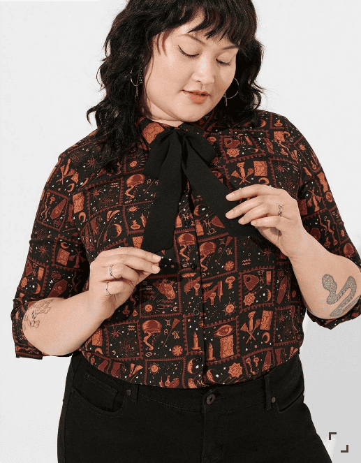 Speaking of wearing to work – how perfect is this Hocus Pocus Tie Neck Long Sleeve Blouse? Just pair it with some black trousers and your favorite pair of loafers for a look that is professional while still fun!