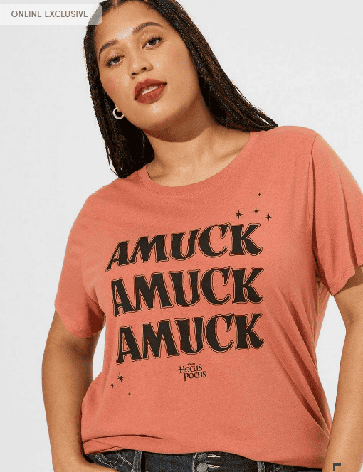 Celebra la temporada más maravillosa del año: ¡Halloween! con estos atuendos de la marca Torrid inspirados en las hermanas Sanderson. Encuentra vestidos, blusas de botones con moño, suéteres, camisetas de manga tres cuartos, falda de botones, camisetas con mangas tipo mesh, camisetas con frases icónicas como “Amuck, Amuck, Amuck” y suéteres con collar tipo Peter Pan de Binx.