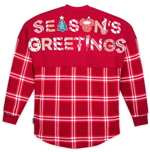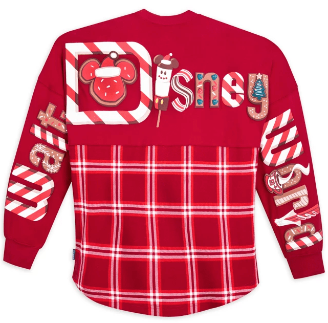 First up, we have this delightful jersey for Walt Disney World! There are a few different parts to this Spirit Jersey that have me in the holiday spirit. Of course, there’s the plaid but check out the Walt Disney World emblem on the front. It looks like a candy cane striped design! Who’s ready for candy canes? This fashionista! The back gives a bit more of a hint as to what the theme is (aside from plaid). It would appear that holiday snacks are the theme! In fact, shopdisney’s description calls it a Holiday cookie and candy motif. Bring me ALL the holiday cookies and candy, please!