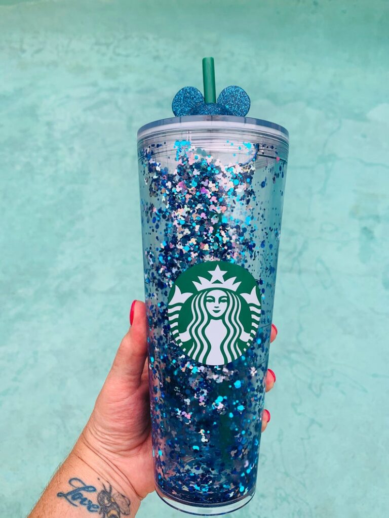 First up is this Iridescent Mickey and Blue Glitter Snowglobe Tumbler. The colors of this design remind me of a mermaid and honestly, that is kind of my life goal. Live at Disney. Be fabulous. Become a mermaid. That is a totally achievable dream, right?