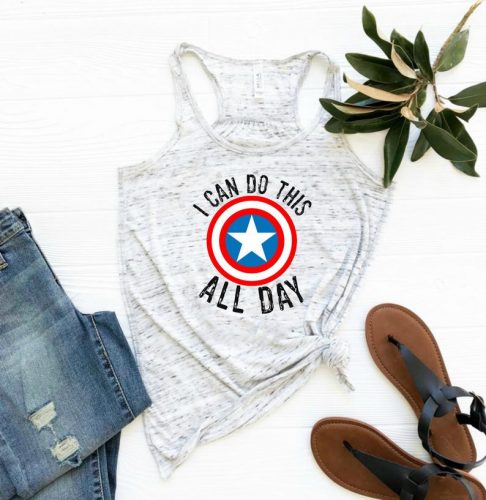 Whatever you love, let everyone know that “I can do this all day” when you wear this Captain America inspired tank top.