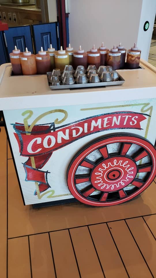 Mickey & Friends Festival of Foods takes dining on deck to a whole new level! Designed to look like pop-up street food vendors, these themed counters really elevate the casual dining experience.