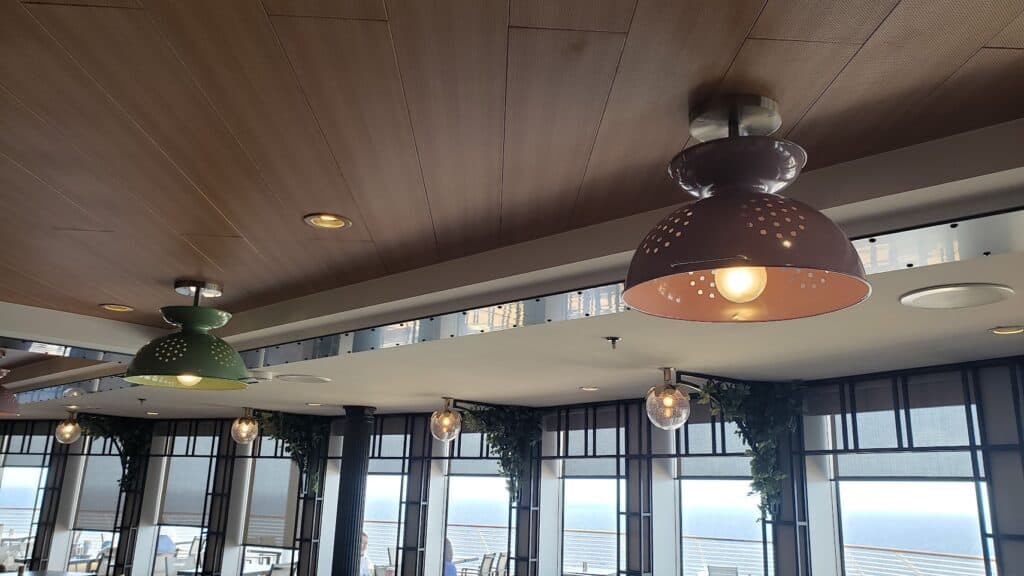 We were all obsessed with the flowerpot light fixtures! They were so much fun to look at and the perfect photo opportunity. Of course, attention to detail is not lacking here either. Just look at the colander light fixtures we spotted in one of the dining areas!