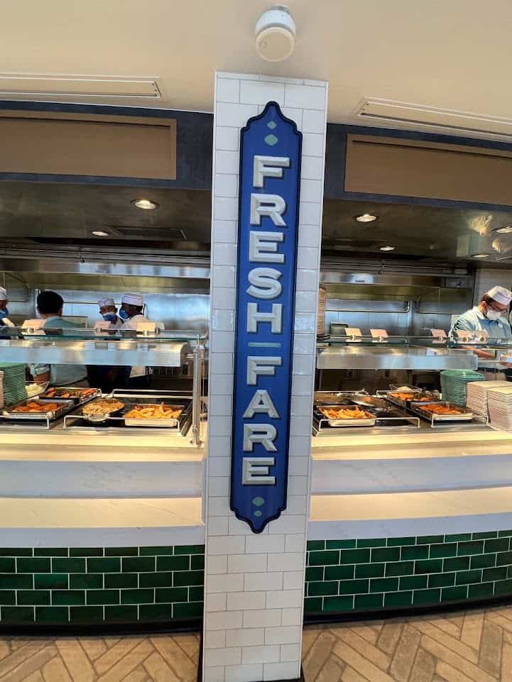 Now that we have looked at the dinner dining adventures onboard the Disney Wish, it’s time to take a bit out of the more casual fare available onboard. Both Marceline Market and Mickey & Friends Festival of Foods allow Guests to eat to their heart’s content on delish comfort food, international favorites, and fresh seafood options.