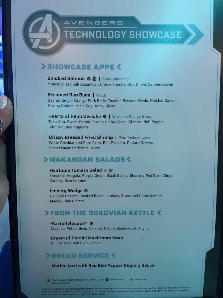 Disney Cruise Line food Travel1923 A Frozen Dining Adventure Arendelle DCL Disney Cruise Disney Cruise dining Disney cruise food Disney Cruise Line disney wish Disney wish dining Disney wish food Frozen restaurant Marceline Market Marvel restaurant Mickey & Friends Festival of Foods Mickey and Friends Festival of Foods small world vacations smallworldvacations Worlds of Marvel