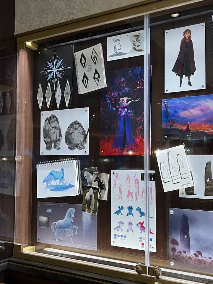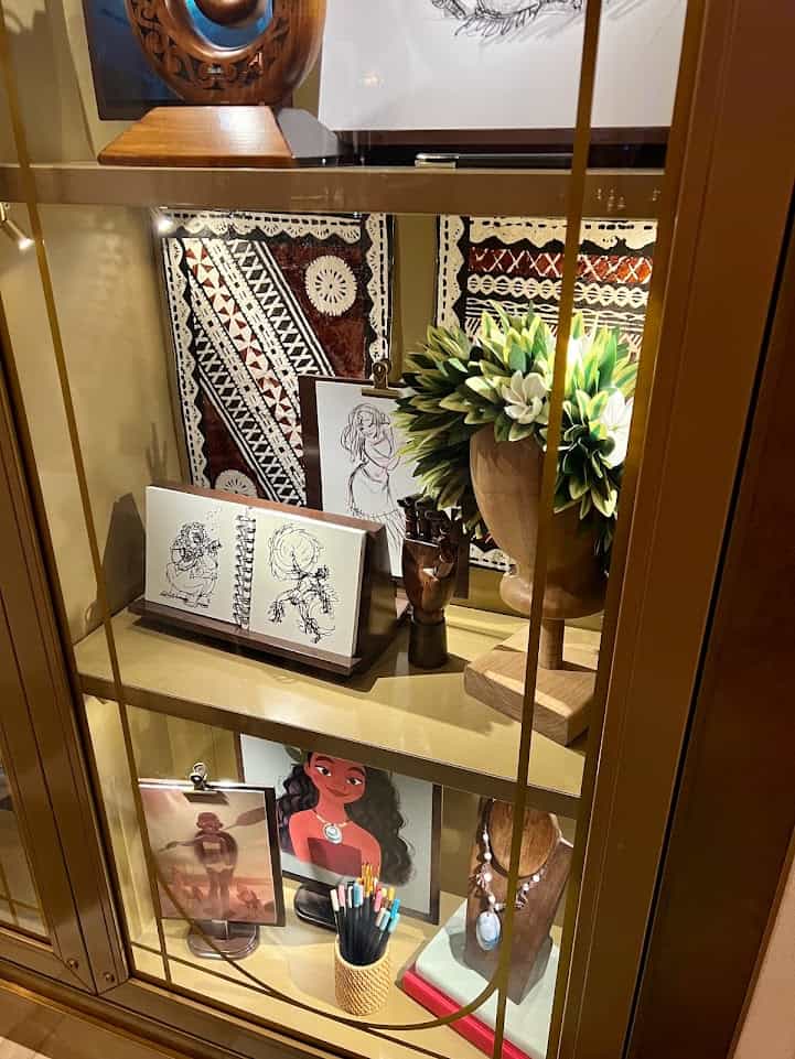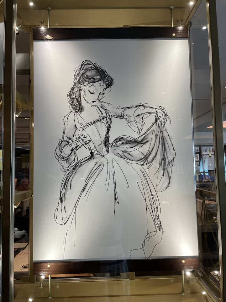 To be honest, this was my favorite restaurant of the three! There is so much to see (and eat!) here. The restaurant is filled with display cases, showing highlights and artwork of favorite Disney Princess films. I loved the Moana section, Lindsay loved Beauty and the Beast, and Michelle loved Tangled. There was something for all of us here!