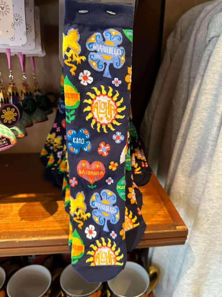 If you want “it’s a small world” inspired fashions, you have come to the right place! This collection features a zip-up hooded sweatshirt, shirt options for adults and children, a Spirit Jersey, and a pair of fabulous Mouse Ears. There’s even a colorful pair of socks!