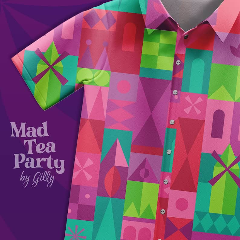 Make sure to grab a coordinating shirt from Mad Tea Party by Gilly for your partner to wear! The various shades of pink and purple really pop against the greens and show off the design. Together you’ll be the hit of the parks!