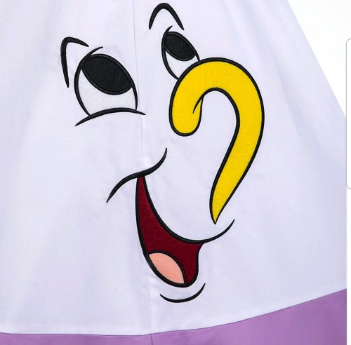 We’ve seen a few different dresses honoring the film Beauty and the Beast but there hasn’t been anything like the new Chip inspired dress that was released on the Shop Disney Parks App early this morning. This dress is playful and bright and truly enchanting. It is seriously all about the details, though, fashionistas. Trust me.
