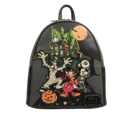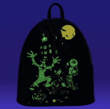 Si esperas con ansias la temporada de Halloween esta mochila de Loungefly te tendrá lista para ella. Con Mickey, Donald, Goofy disfrazados listos para ir a pedir dulces o travesuras y al fondo una mansión claramente embrujada. Tanto al reverso como en el interior podemos encontrar detalles de dulces y… además brilla en la obscuridad. Corre a preordenarla en Blue Culture, utiliza el código MICHELLERICHARD para un 10% de descuento.