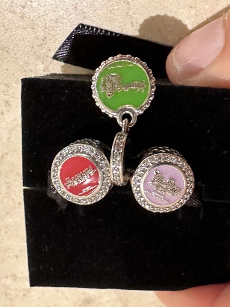 Unfortunately for Miss Piggy, you cannot get her charm individually. She has to share the spotlight with Animal and Kermie in this Park Exclusive set. It was found at Uptown Jewelers this morning and I’m sure it will be wherever Pandora is on property, either today or soon. The set retails for $250.