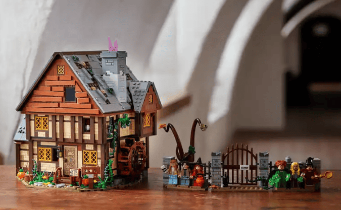 This set includes 2,316 pieces, a fully detailed interior, props from the film in LEGO form, and new minifigures! You’ll spot the Sanderson Sisters themselves, Max, Danni, Allison, and Thackery Binx in cat form!